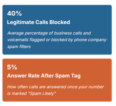 But here's the harsh reality: spam filters now block more than 40% of legitimate business calls. Once your number is marked with a "Spam Likely" label, the percentage of people who answer your calls can drop to less than 5%. Your sales team keeps dialing. Your automated calling systems keep trying. But your revenue? It goes completely silent.