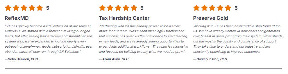 Most importantly, 2X has become embedded in how we operate. They're not a vendor sitting on the sidelines, they're an extension of our team. Their combination of technology and hands-on support has reshaped how we interact with customers and how effectively we convert them."